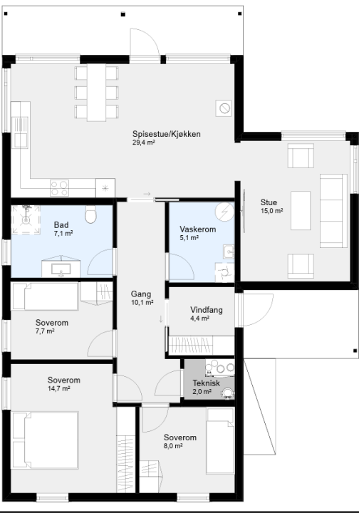 Tre romslige soverom, åpen stue med peis, stort kjøkken og skjermede uteområder skaper et hjem for ro og samvær. Enten du er en familie, et par, eller ser fremover mot pensjonistårene, er Linge et hjem for livet.