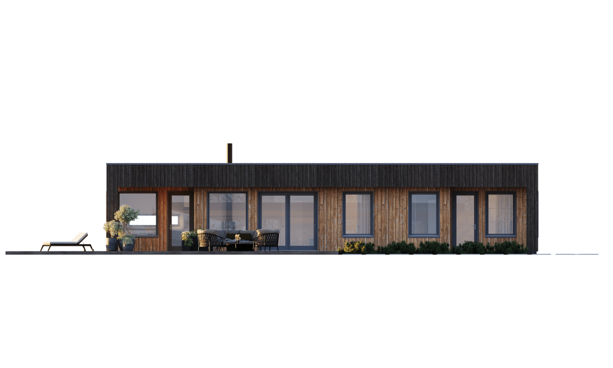 Velkommen til Hovden – en moderne bolig med rene linjer, funksjonalitet og tidløs estetikk. De store vindusflatene gir rikelig lys og en innbydende atmosfære.