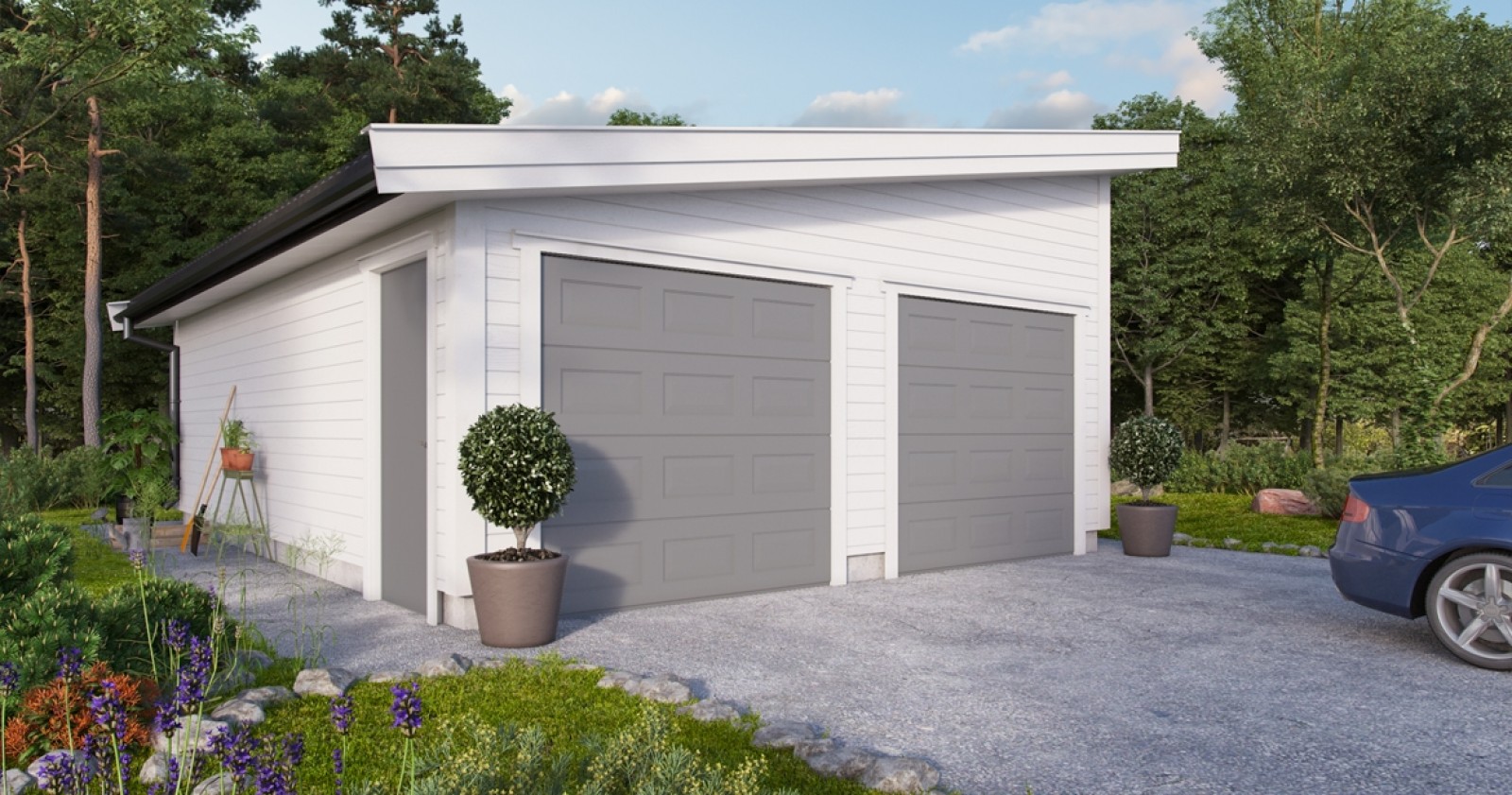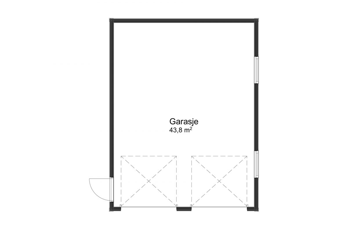 Denne garasjen har et enkelt design som vil passe godt sammen med de fleste boligmodeller. Garasjen har doble porter og det er plass til to personbiler samt. sykler og annet som skal oppbevares i garasjen.