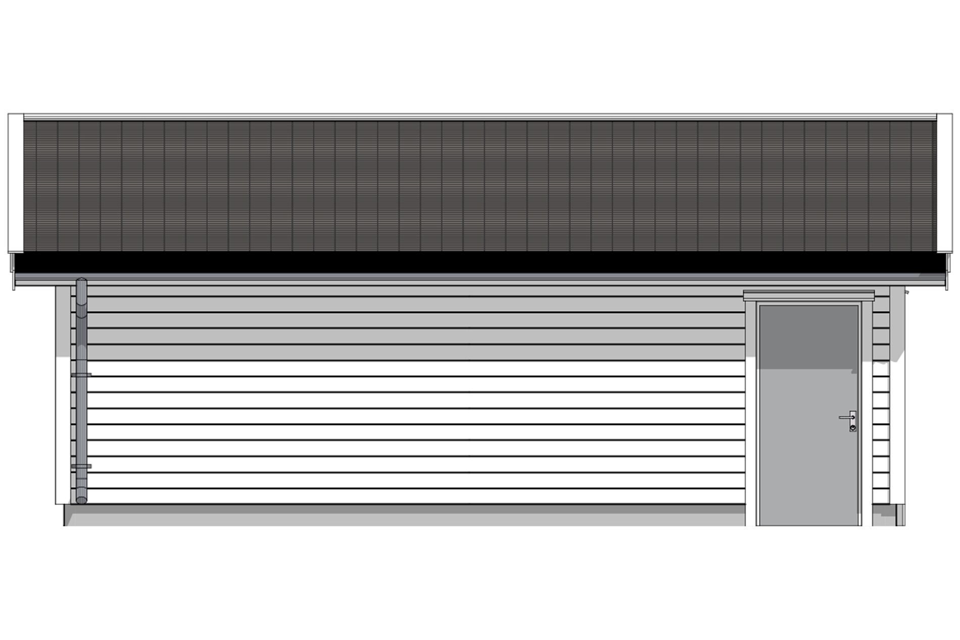 Vinduer slipper lys inn i bygget, samtidig som en dør på venstre side av garasjen lar deg gå ut og inn uten å måtte heve portene.