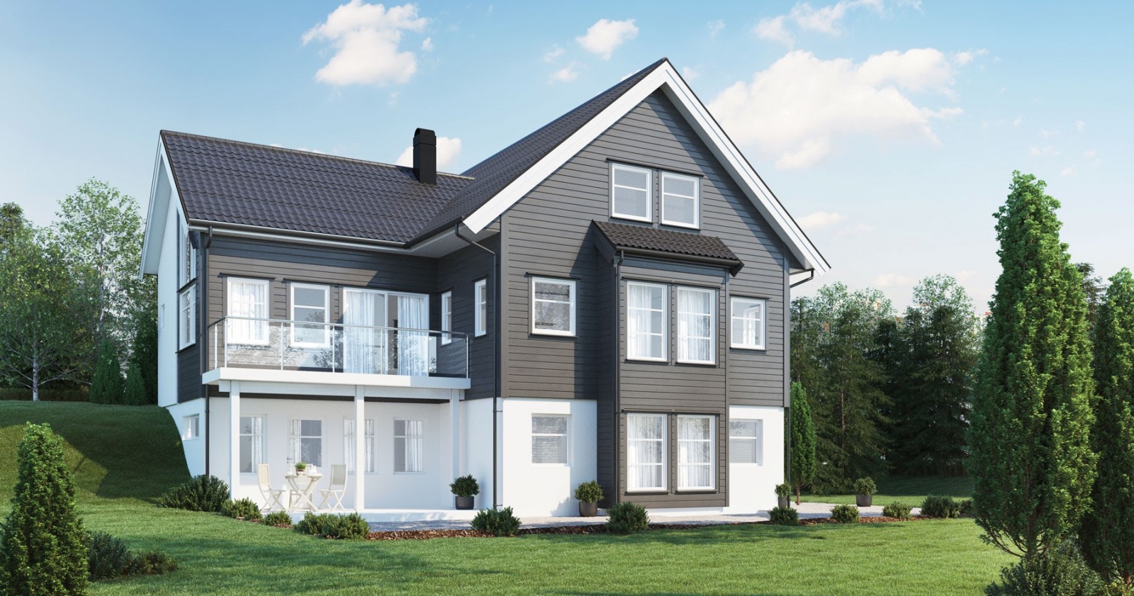 Begregnet for skrå tomt.