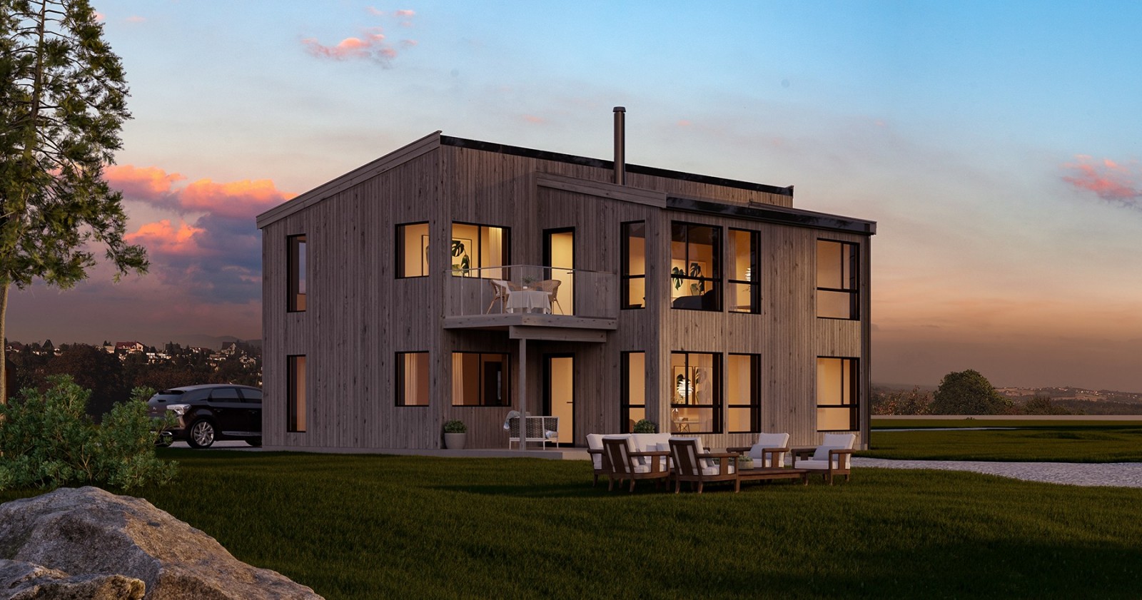 Med sitt tidsriktige uttrykk er Midsund en av våre mest populære boliger. Huset har alle nødvendige funksjoner i første etasje og oppholdsrom både på hovedplan og på loft.